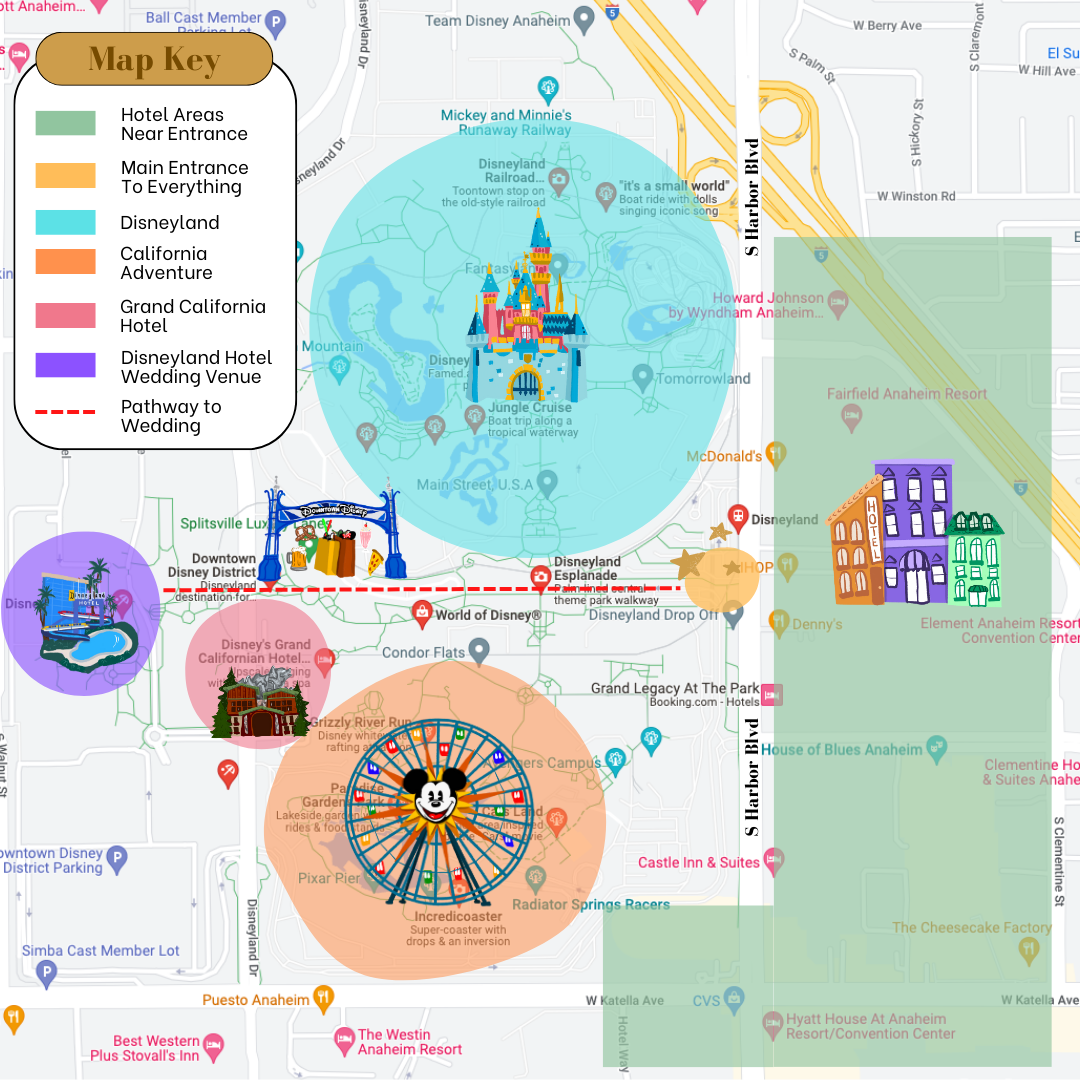 There are plenty of hotel options around the resort that can fit any budget! Disney calls them Good Neighbor Hotels and are at most a 15 minute walk from the wedding venue and the theme parks. We recommend booking one of the hotels along South Harbor Blvd as they're closest to the main entrance to the parks. Some of Allison's favorite stays include: